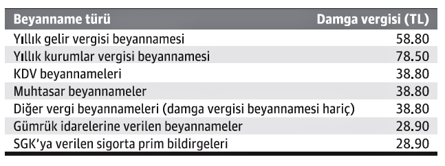 Beş ortaklı bir anonim şirketi ele alalım. 2018’de, 2017 gelirleri için kurumlar vergisi beyannamesi verecektir (78.50). Bu şirket kirası ve çalışanları dolayısıyla her ay muhtasar beyanname (12 X 38.80=465.60) ve faaliyetleri dolayısıyla her ay KDV beyannamesi verecektir (12 X 38.80=465.60). Çalışanları için her ay sigorta prim bildirgesi verecektir (12 X 28.90=346.80). Kâr dağıtırsa beş ortağı da muhtemelen yıllık gelir vergisi beyannamesi (5×58,80=294,-) verecektir. Bu şirket dolayısıyla yılda toplam 1.650,50 TL damga vergisi ödenecektir. Niçin? “Beyanname verdi” diye. Neredeyse bir asgari ücretli işçinin ücreti.